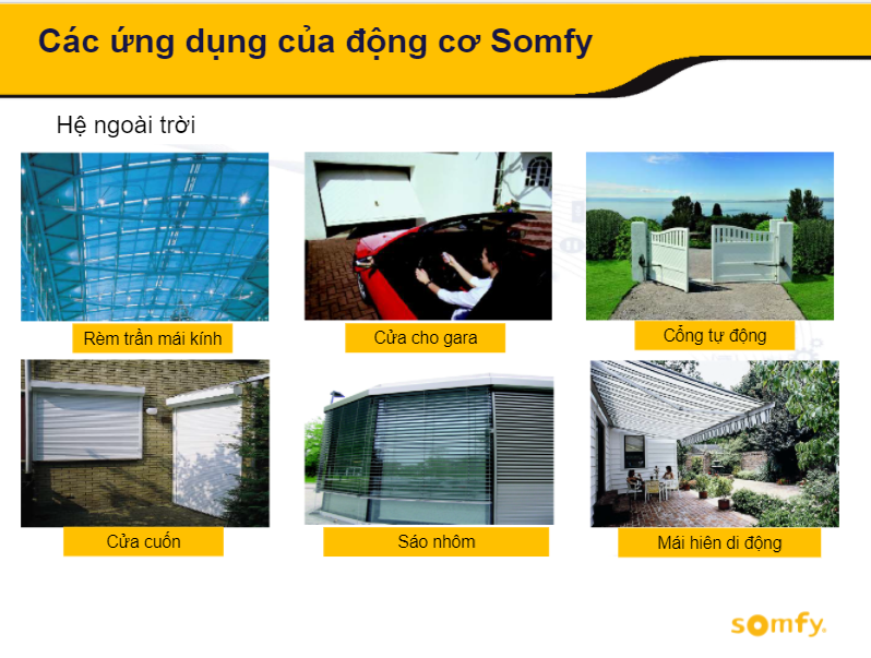 Các ứng dụng của động cơ Somfy.